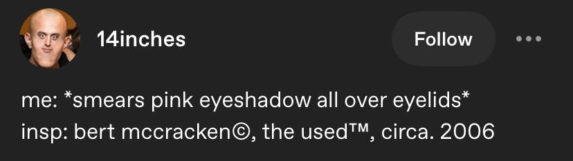 2000's emo/punk bands ★ bert mccracken <333 ★ horror/thriller movies ★ mystery novels ★ true crime documentaries ★ cozy video games ★ cats ★ the color pink ★ glitter ★ halloween & autumn ★ vampires ★ collectible character brands ★ dolls ★ aesthetics ★ reading ★ writing ★ journaling ★ making kandi & perler bead art ★ making lists ★ dark chocolate ★ iced coffee ★ bob's burgers ★ smosh ★ hugs ★ kind people ★ you! ★ etc! ( ˃ᴗ˂ ) ♥︎